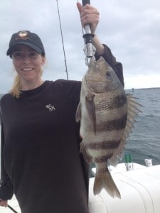I guided Jessica, a repeat customer of mine and her three friends on a gorgeous March afternoon in Pensacola Bay. The goal was to load the box with sheepshead then target some big redfish for the girls to have fun with. The sheepshead bite was on fire all afternoon. We started on a shallow bank in 25ft of water catching at least two fish every drift. We put 12 fish in the boat very quickly then went to search for some reds. The redfish were a little scarce this particular afternoon. We only saw two are three fish that turned down our offerings. After searching for an hour with no success I took my clients to an inshore wreck that typically holds redfish, sheepshead, and grouper. On the first drift we hooked into a nice red but pulled the hook. O well! That’s fishing! The rest of the afternoon we couldn’t get our bait past the sheepshead to the bigger fish. I don’t think I have ever seen the sheepshead as thick as they were on this particular afternoon. None the less it was a beautiful day on the water with much success. The girls were great clients and did an outstanding job!