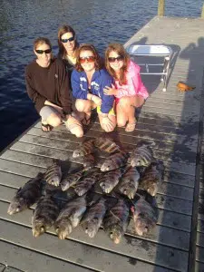 I guided Jessica, a repeat customer of mine and her three friends on a gorgeous March afternoon in Pensacola Bay. The goal was to load the box with sheepshead then target some big redfish for the girls to have fun with. The sheepshead bite was on fire all afternoon. We started on a shallow bank in 25ft of water catching at least two fish every drift. We put 12 fish in the boat very quickly then went to search for some reds. The redfish were a little scarce this particular afternoon. We only saw two are three fish that turned down our offerings. After searching for an hour with no success I took my clients to an inshore wreck that typically holds redfish, sheepshead, and grouper. On the first drift we hooked into a nice red but pulled the hook. O well! That’s fishing! The rest of the afternoon we couldn’t get our bait past the sheepshead to the bigger fish. I don’t think I have ever seen the sheepshead as thick as they were on this particular afternoon. None the less it was a beautiful day on the water with much success. The girls were great clients and did an outstanding job!